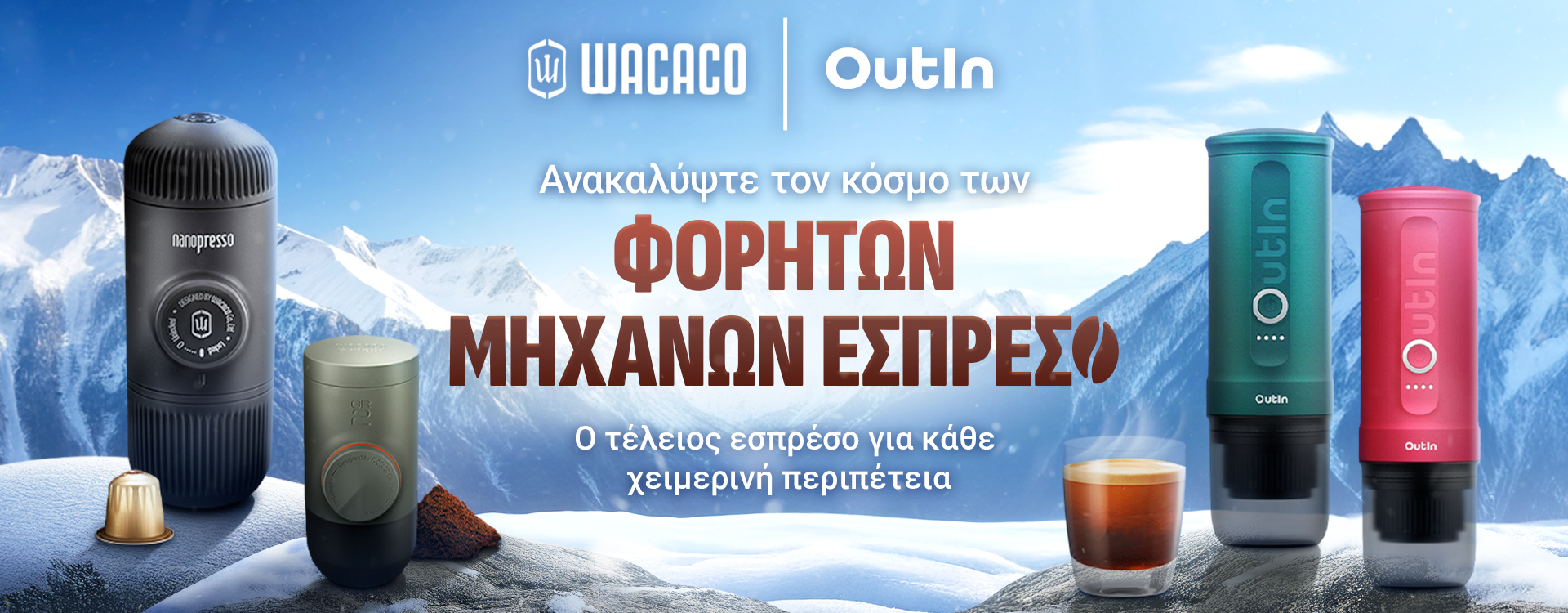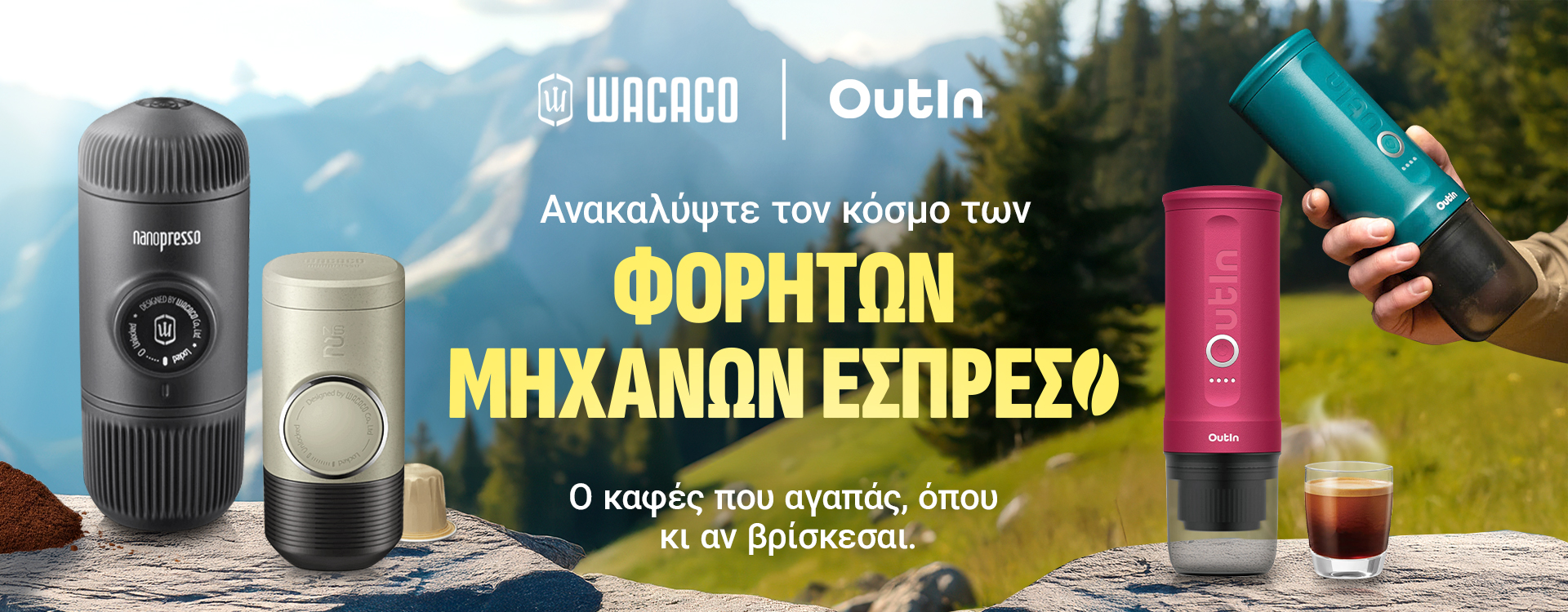 Δύο ονόματα που αλλάζουν τον τρόπο που πίνουμε καφέ εν κινήσει. Η Wacacoεστιάζει στο κλασικό χειροκίνητο εσπρέσο - την αίσθηση της δημιουργίας του δικού σας εσπρέσο με τις δικές σας προσπάθειες.Το Outin ανταποκρίνεται με τεχνολογία επόμενης γενιάς – αυτόματη θέρμανση, με ένα άγγιγμα και ο καφές είναι έτοιμος. Το ένα σε γυρίζει πίσω στις ρίζες του καφέ, το άλλο στην ελευθερία του σύγχρονου κόσμου. Ποιον θα διαλέξεις; Είναι θέμα στυλ, ρυθμού και αίσθησης.