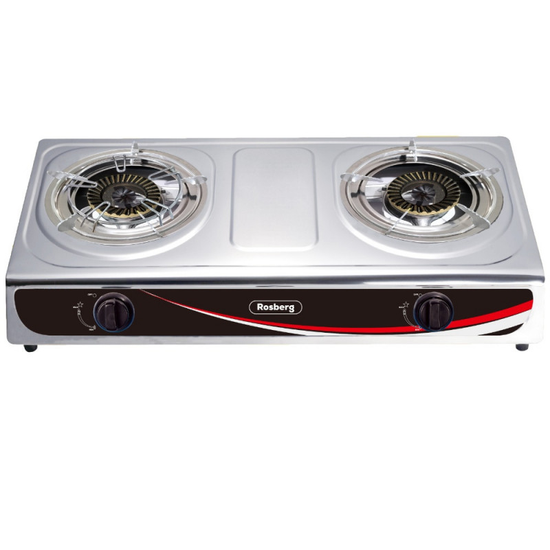 Διπλή εστία αερίου Rosberg Premium RP51454BDF, 30 mbar, Καυστήρες από χυτοσίδηρο, Με προστασία, Inox