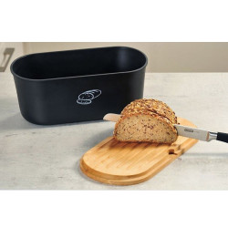 • Ψωμιέρα με ξύλο κοπής Kesper 85091, 33,5x18x14cm, Επικάλυψη μελαμίνης, Μπαμπού, Μαύρο