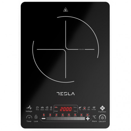 Μονή επαγωγική εστία Tesla IC400B, 2000W, Χειριστήριο αφής, LED οθόνη, 9 επίπεδα θερμοκρασίας, 8 επίπεδα ισχύος, Χρονοδιακόπτης, Μαύρο χρώμα