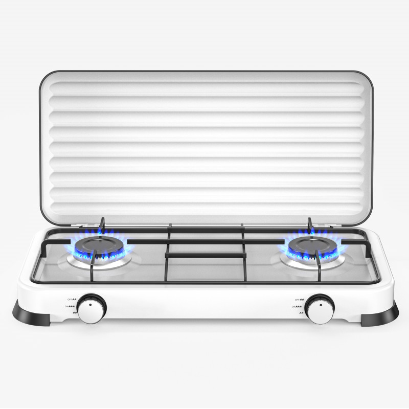 Διπλή εστία αερίου με καπάκι Rosberg R51454D2 2x 2,2 kWh, 30 mbar, Ανθρακούχο χάλυβα, Λευκό