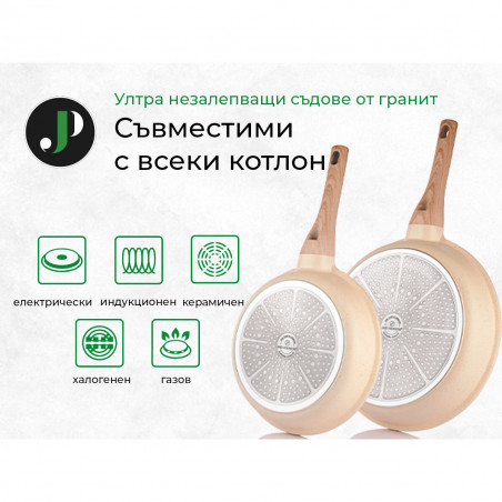 Σετ κατσαρόλες και τηγάνια Just Perfecto JL-777, 14 h, χυτό, μαρμάρινο φινίρισμα, επαγωγή, αξεσουάρ, μπεζ