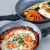 Αυτό το τηγάνι είναι κατάλληλο για το μαγείρεμα μιας ποικιλίας πιάτων όπως αυγά, λαχανικά, κρέας και ψάρι, παρέχοντας γρήγορο και ομοιόμορφο μαγείρεμα χωρίς να χρειάζεται πολύ λίπος.